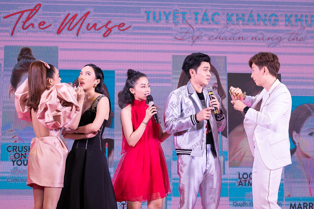Trong phần giao lưu trong sự kiện, Sam đã mix màu son cho Diệu Nhi khiến fan trầm trồ. Ngoài Diệu Nhi được Sam “biến hoá”, Jun Phạm cũng được Ngô Kiến Huy hoạ mặt sương sương, khiến hàng trăm khán giả đều cảm thấy thú vị và thích thú dõi theo.