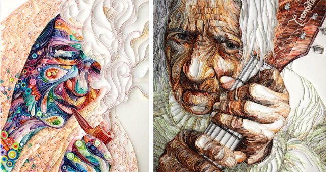 Thoạt nhìn những tác phẩm của Yulia như những bức tranh vẽ bằng sơn màu, nhưng khi quan sát thật kỹ, bạn sẽ thấy nó gồm hàng trăm mẩu giấy nhỏ được xếp cạnh nhau. Đó là cách mà Yulia tạo ra những bức tranh độc đáo trong 10 năm qua.