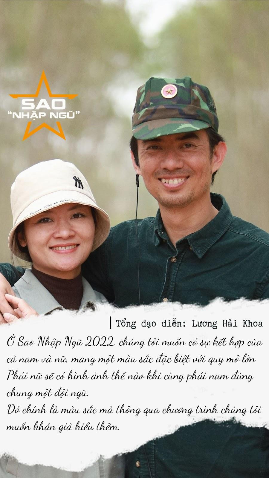 Trở lại với Sao Nhập Ngũ 2022, chương trình hứa hẹn một mùa trải nghiệm đầy thú vị, mang đến những hình ảnh mới mẻ, đặc biệt của nghệ sĩ trải nghiệm. Tổng đạo diễn Lương Hải Khoa - người "nắm trùm" 10 mùa Sao Nhập Ngũ đã tiết lộ Sao Nhập Ngũ 2022 sẽ quy tụ những lần "khủng" nhất trong suốt 10 mùa phát sóng vừa qua.