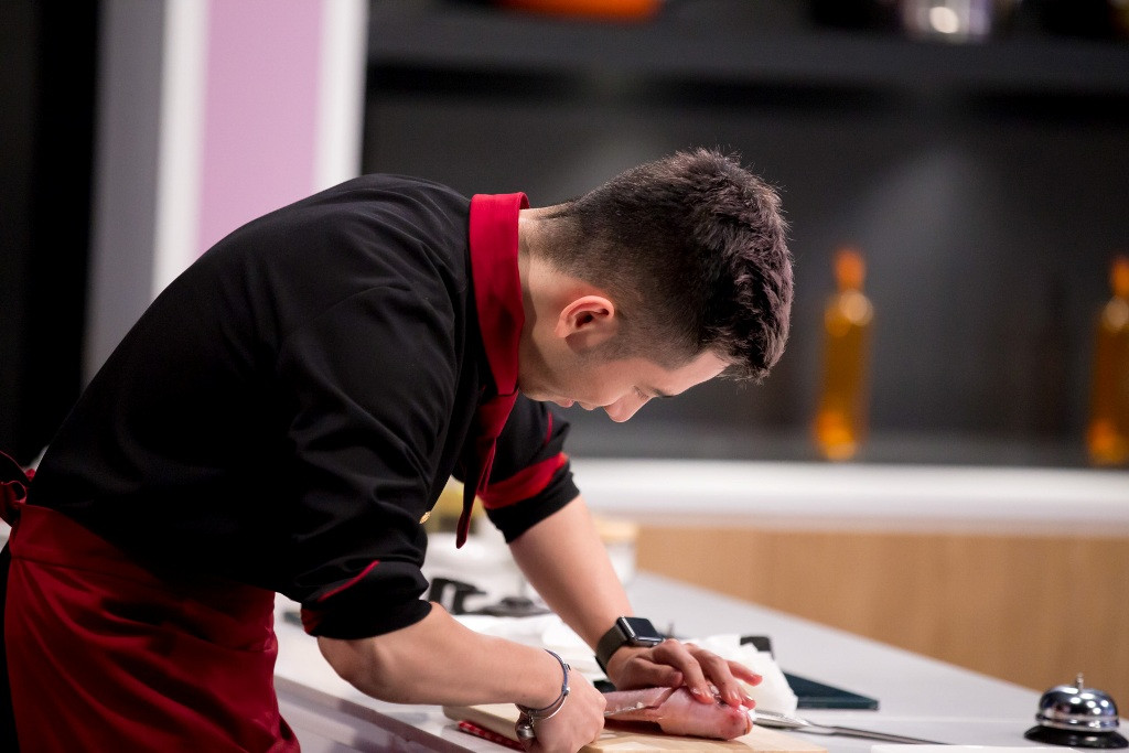 Em út Vũ Dino luôn làm khán giả bất ngờ với những mẹo vặt trong nấu ăn. Anh cũng thừa nhận mình không giỏi trong khâu chế biến vì vốn ở nhà luôn có mẹ là người phụ bếp. Anh chàng food blogger lựa chọn hình thức đơn giản lóc xương cá thành 2 mảnh.