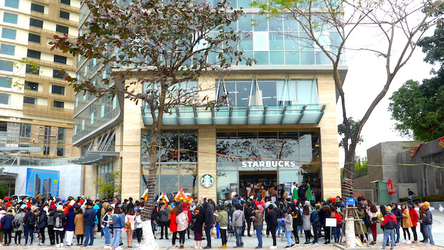 Các bạn trẻ Tp.HCM xếp hàng từ sớm để nhận quà kỷ niệm của Starbucks