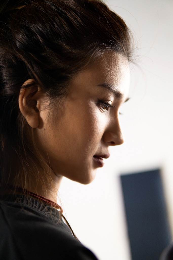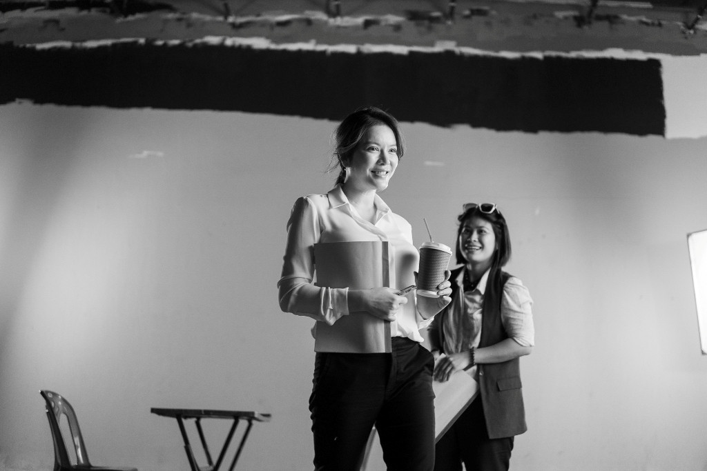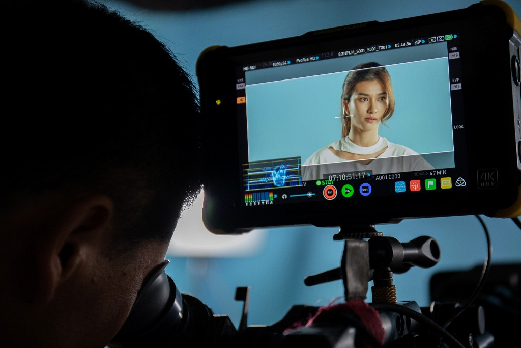 Lý Nhã Kỳ lắng nghe góp ý của đạo diễn trong lần test máy đầu tiên