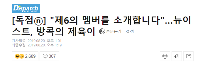 Đến "Hung thần" Dispatch cũng cảm động và dành hẳn một bài báo về thành viên thứ 6 của NU'EST vào ngày 20/8. Bài báo viết về sự kiện NU'EST gặp gỡ các fan cho tour concert Segno tại BangKok, Thái Lan vào tháng 7 vừa qua. Trong buổi gặp mặt, khi được MC hỏi về thành viên thứ 6, NU'EST đã mỉm cười rạng rỡ khi giới thiệu về Jaeyuk.