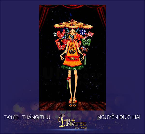 Thăng thu của tác giả Nguyễn Đức Hải với thiết kế váy yếm ngắn đính đèn lồng mang đến hình ảnh của một cô rối nước đáng yêu, đầy mới lạ. Các hình ảnh trang trí đậm chất truyền thống dân tộc được sử dụng hiệu quả, tuy nhiên phom dáng trang phục vẫn có phần đơn giản.