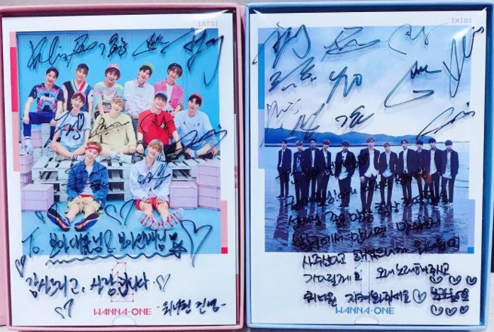 Trên tài khoản Twitter của mình, BoA vừa mới khoe món quà do Wanna One gửi tặng: Đó là hai phiên bản hồng và xanh của album đầu tay mà Wanna One mới phát hành, kèm theo đầy đủ chữ ký của các thành viên.