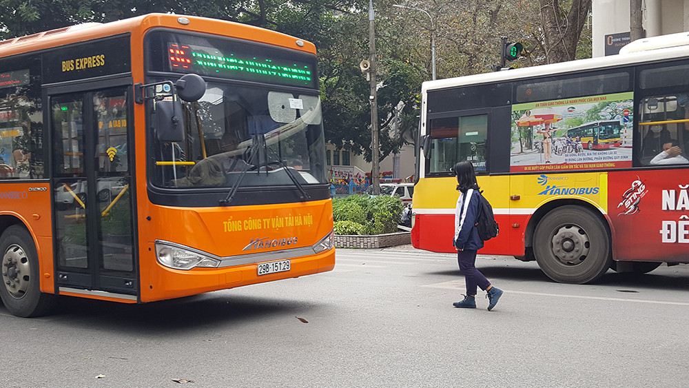 Đi “xe căng hải” vẫn tự tin tạt đầu xe buýt để sang đường.