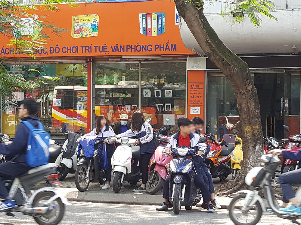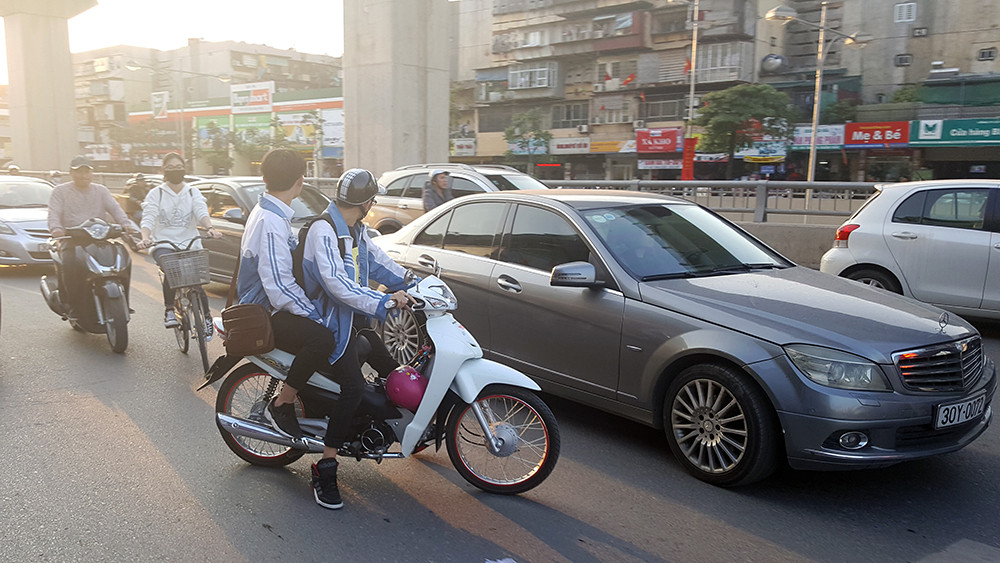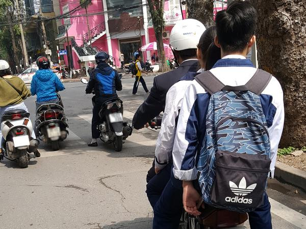 Có vẻ như mũ bảo hiểm là "đồ trang trí" với các bạn học sinh này?
