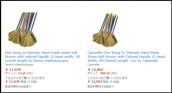 Được đăng bán trên trang Amazone của Nhật, món hàng này được quảng cáo là ”Chổi cô Bông thủ công Việt Nam”, có giá 12.000 yên (khoảng… hơn 2,5 triệu đồng) cho 12 cái và freeship. Tính ra, mỗi cái chổi có giá tầm 200K, trong khi thực tế ở Việt Nam, chổi đót chỉ có giá cỡ mấy chục ngàn 1 cái.