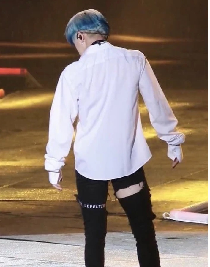 Phải nhảy múa trong chiếc quần da bó sát thế này chắc chắn khó chịu vô cùng, nhưng bù lại đã giúp Wonho thêm nổi bật, khoe khéo cơ đùi hoàn hảo.