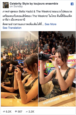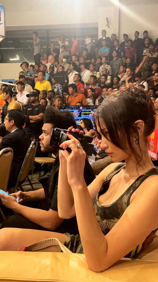 Bức ảnh ngay sau đó được đăng tải trên trang Facebook nổi tiếng của Thái Lan và được truyền tay nhau với sự thích thú của cưa dân mạng. Trong ảnh, cả hai đều ngồi ở khu vực VIP để quan sát trận Muay Thai. Bella rất thoải mái quay lại video trận đấu trong khi The Weeknd chăm chú ngồi xem.