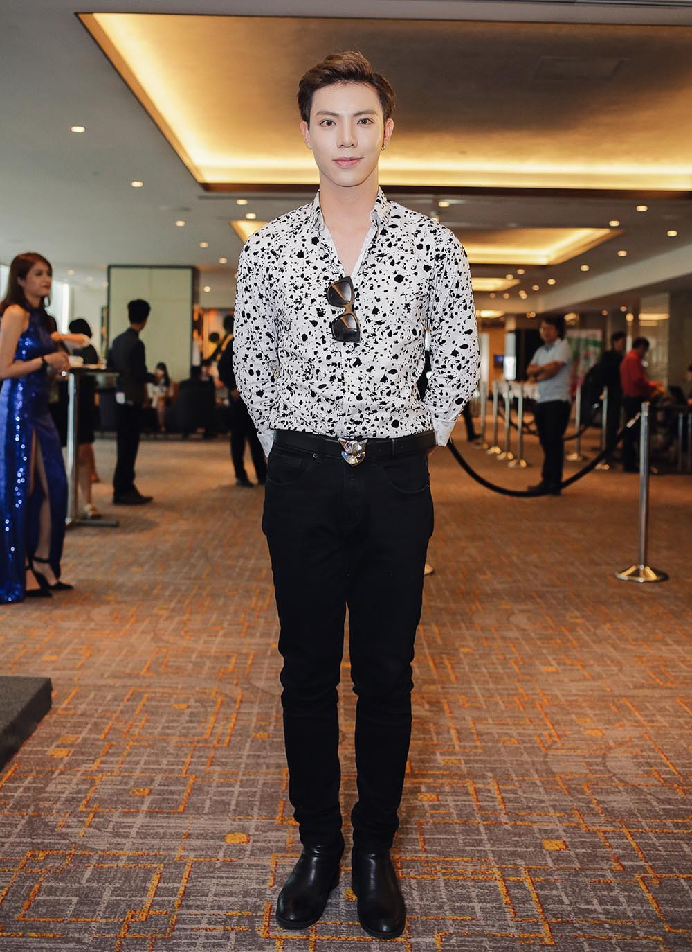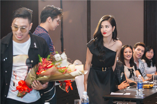 "Hit-maker" Tăng Nhật Tuệ xuất hiện với set đồ khá đơn giản theo tông đen - trắng.