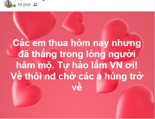 Trên các trang mạng xã hội, những người yêu mến bóng đá đều dành lời động viên, an ủi và cảm ơn các cầu thủ đã chiến đấu hết mình cho một mùa giải văn minh và nhiệt huyết. Với người hâm mộ, điều quan trọng hơn cả là đội tuyển quốc gia đang dần trưởng thành và khẳng định thực lực không hề kém cạnh các đội bóng khu vực châu Á.
