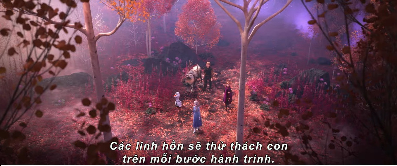 Sắc xanh của băng tuyết dần được thay bằng sắc đỏ của rừng lá thu, nơi bộ tứ Elsa, Anna, Kristoff, Olaf phải đối diện với những nhân vật chưa từng được biết đến và những hiểm nguy đang rình rập