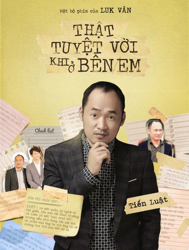 Cuối cùng là tấm poster của ông bầu Luật do “Đường Băng đại huynh” Tiến Luật đảm nhận. Rời bỏ hình tượng giang hồ, Tiến Luật trở nên lịch lãm và đầy toan tính trong dáng dấp một ông bầu ở showbiz. Tuy rất thương Đình Bảo nhưng nếu đụng đến lợi ích, Luật sẽ lập tức “xù lông” lên. Câu nói của Luật trong trailer cũng phần nào khiến bộ phim trở nên kịch tính hơn bởi những mảng màu showbiz: “Không có scandals thì không thể nào đi lên được!”.