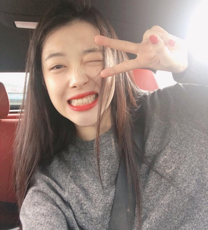 Còn Sulli cũng vừa có màn trêu chọc mọi người bằng đủ các kiểu tóc khác nhau. Đầu tiên, Sulli đăng hình selfie với mái tóc vàng óng lượn sóng, khiến nhiều fan ngỡ Sulli đã nhuộm tóc.