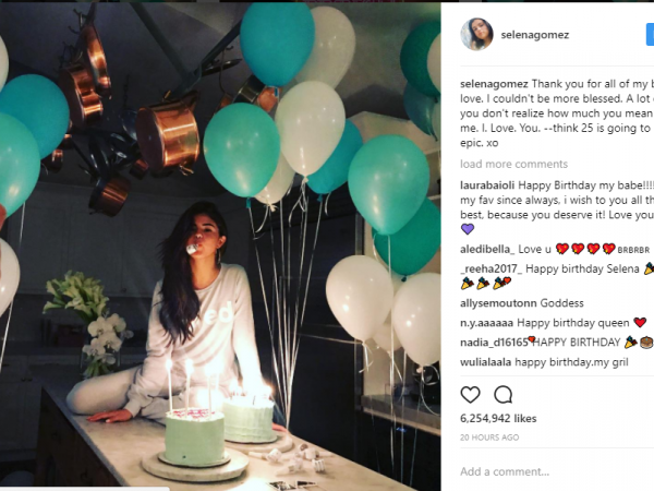 "Cám ơn lời chúc sinh nhật của tất cả mọi người. Tôi không thể ngừng cảm thấy may mắn hơn được nữa. Rất nhiều người trong các bạn không nhận ra rằng các bạn quan trọng với tôi đến dường nào đâu. Tôi. Yêu. Các bạn. Tôi nghĩ tuổi 25 sẽ trở nên rất tuyệt đấy!", Selena đã chia sẻ lời cảm ơn trên Instagram của mình.