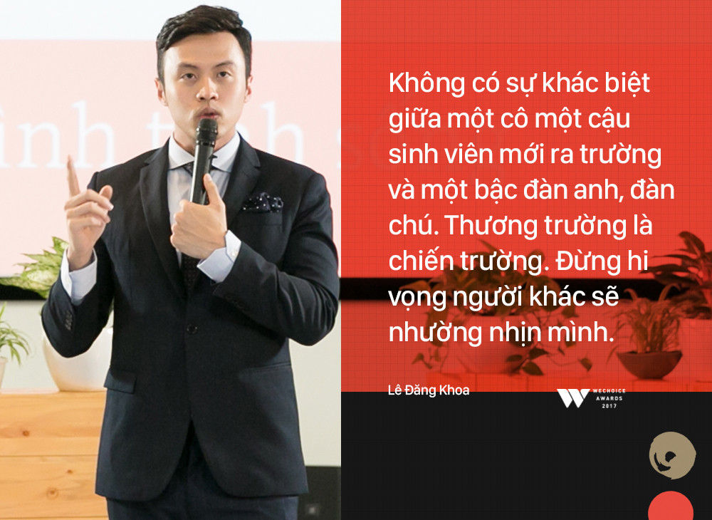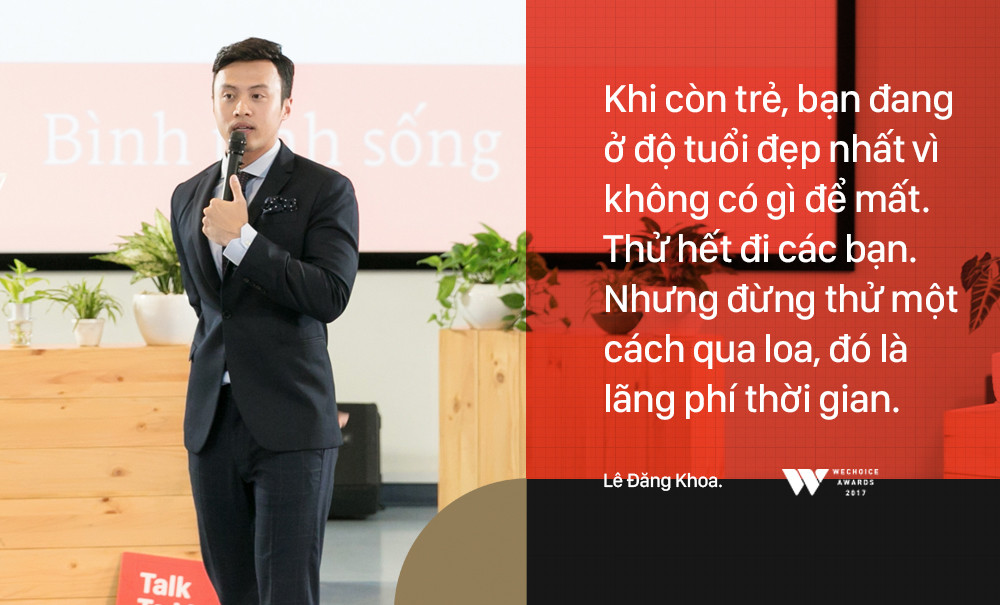 "Bản thân Khoa vẫn là một doanh nhân trẻ. Xung quanh mình vẫn còn rất nhiều những anh chị giỏi giang và thành công hơn mình gấp cả trăm, cả ngàn lần. Vậy nên nếu bây giờ đã tự kể về những thành công của mình thì lại thành ra kệch cỡm quá. Thay vào đó, Khoa chọn cách nói về những thất bại của mình để có thể tạo được cảm giác đồng cảm với các bạn trẻ."
