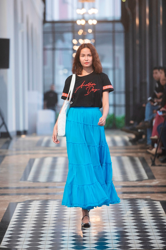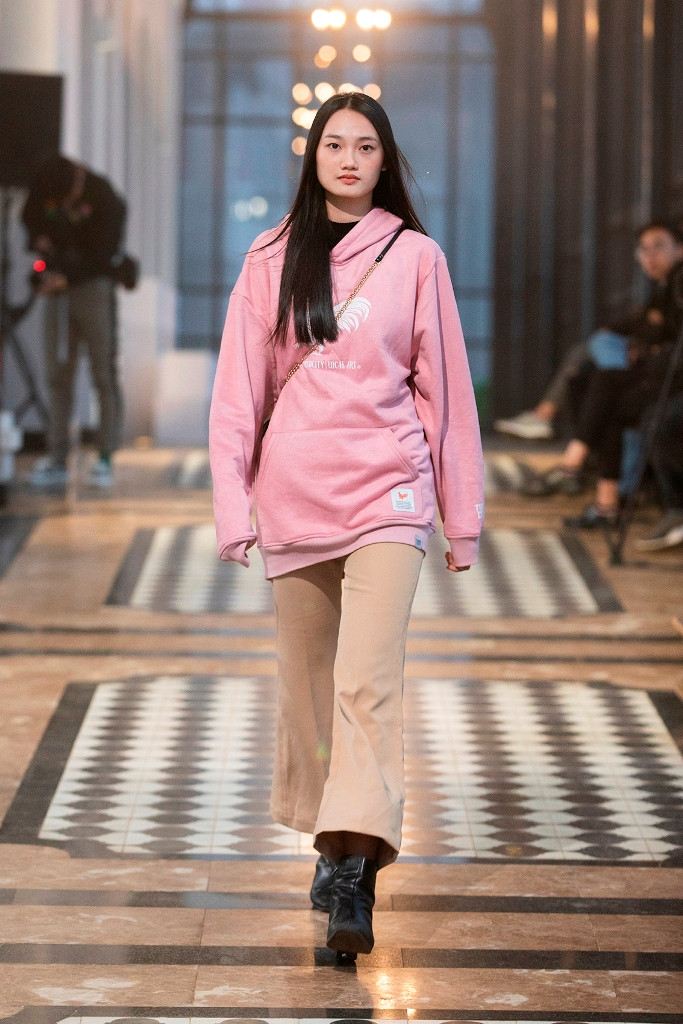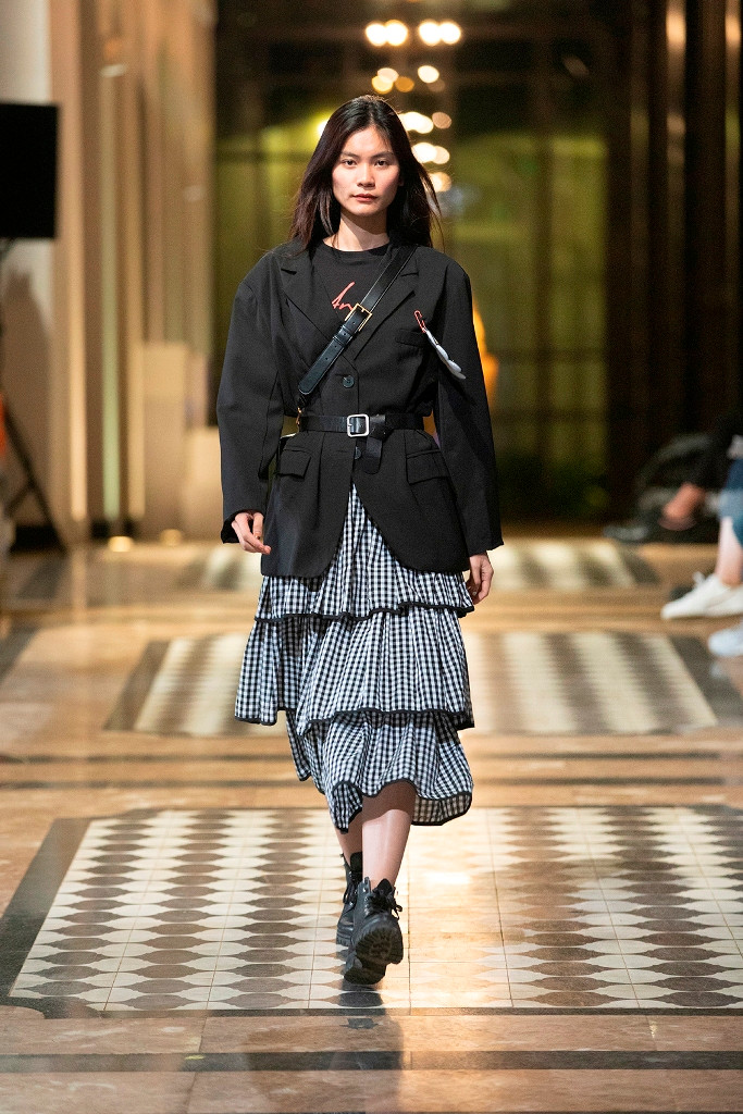 Các người mẫu di chuyển dọc theo chiều dài của nhà ga. Hệ thống ánh sáng được sắp đặt dọc theo đường băng để nổi bật chuyển động của những bước catwalk và các bộ trang phục.