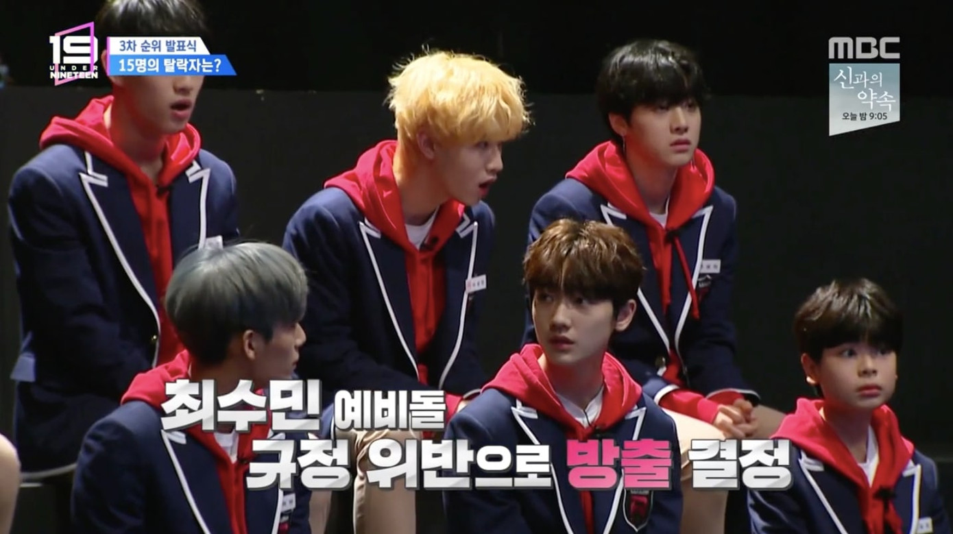 “Trước khi công bố kết quả xếp hạng, tôi có điều này muốn nói với tất cả các bạn. Thực tập sinh Choi Soomin thuộc đội rap đã vi phạm nội quy rất nhiều lần cho đến ngày hôm nay. Thế nên bắt đầu từ thời điểm này trở đi, Choi Soomin không được phép tham gia Under 19 nữa”.