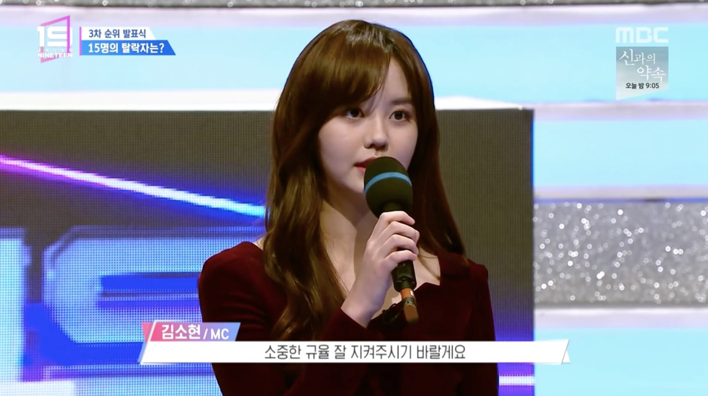 Kim So Hyun tiết lộ thêm “Nội quy của các thực tập sinh có hi rõ rằng các bạn sẽ phải tuân thủ việc tập luyện, phải cam kết hợp tác với những nhân viên hỗ trợ thí sinh. Nên chúng tôi hy vọng các bạn sẽ luôn nhớ làm đúng những nội quy này”.
