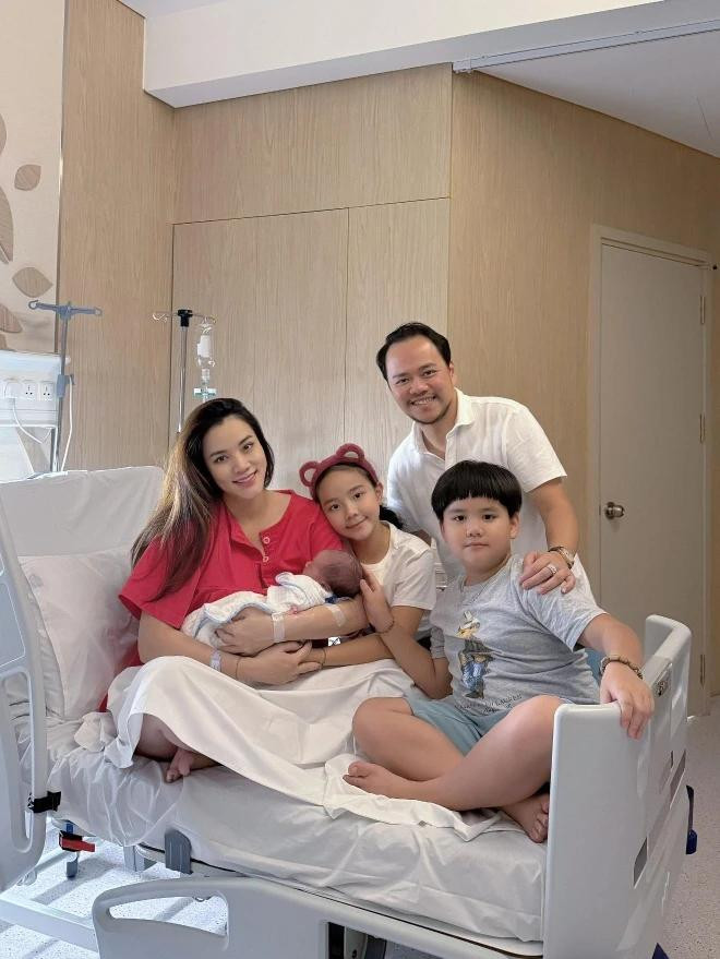 Ngày 2/6, Trang Nhung chia sẻ hình ảnh đầu tiên của cả gia đình sau khi cô sinh con thứ 3.