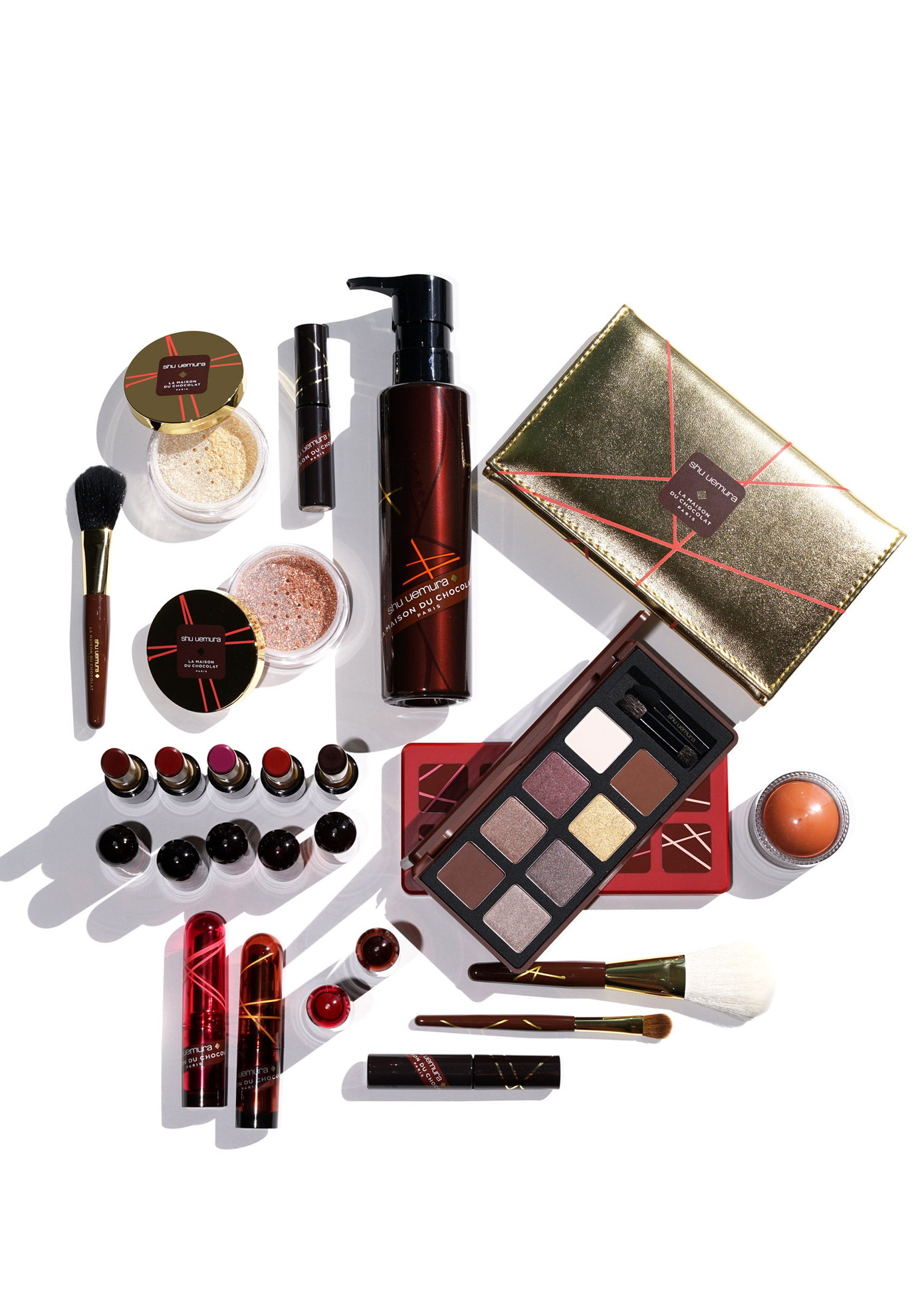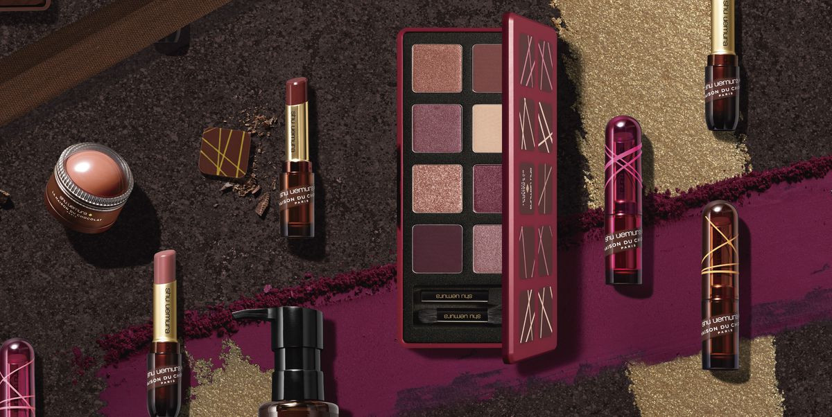 Bộ sưu tập có tên Shu Uemura x Maison Du Chocolat gồm rất nhiều sản phẩm làm đẹp, từ phấn mắt, son môi, chì kẻ môi cho tới phấn phủ dạng bột, phấn má dạng kem hay cọ trang điểm.