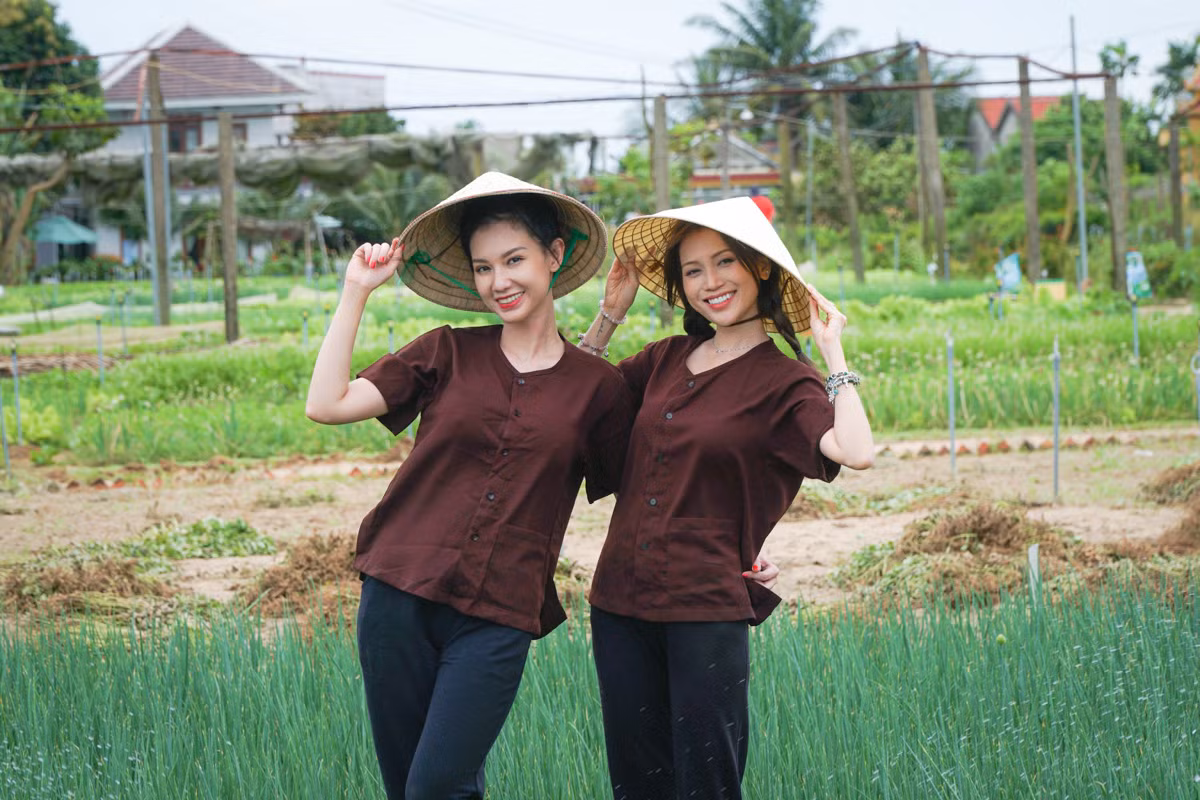 Tiếp đến, Quỳnh Chi và Sĩ Thanh đến thăm làng rau Trà Quế, nơi sản sinh ra rất nhiều loại rau mùi làm nên hương vị đặc biệt cho món ngon xứ Hội An. Cả hai cô nàng cũng được hóa thân thành những người nông dân thực thụ, mặc áo bà ba, mang dép lê, đội nón lá, trải nghiệm tráng bánh tráng, làm vườn, múa hát cùng những chị nông dân duyên dáng, dí dỏm.