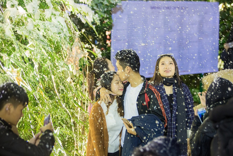 Chưa hết, màn tuyết rơi trong ngày hội Xuân còn mang tới những khoảnh khắc lãng mạn và tràn đầy tình yêu.