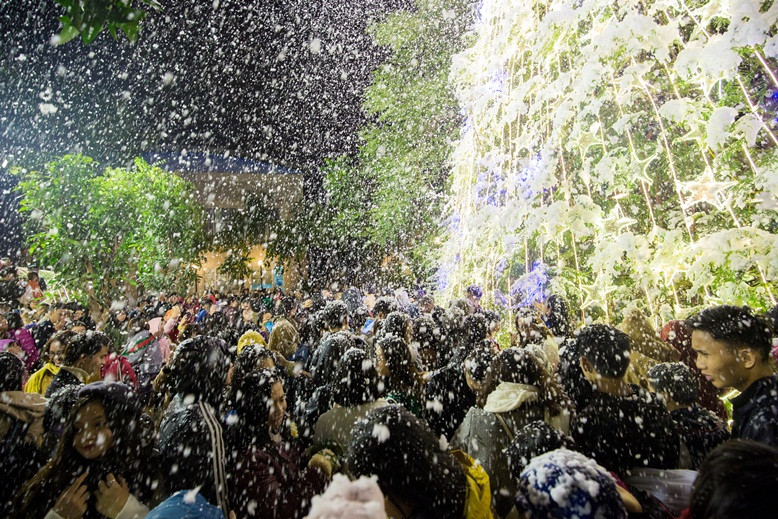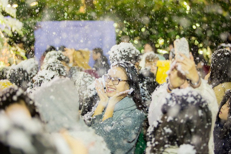 Tuyết đã rơi trước sự háo hức của rất đông các bạn sinh viên ĐH Thăng Long.