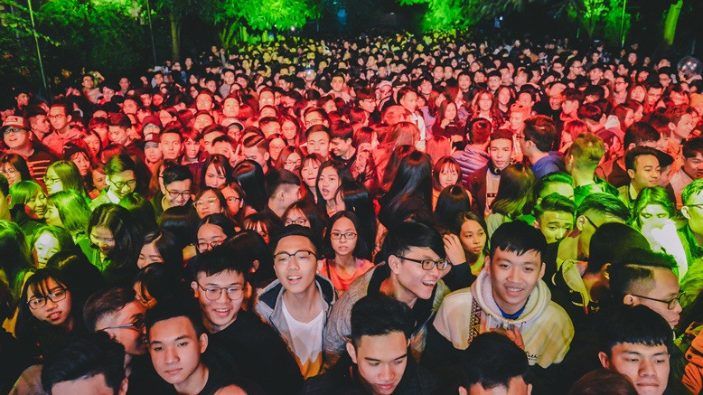 Rất đông các bạn sinh viên đã nhiệt tình tới ủng hộ các màn trình diễn của Bay.