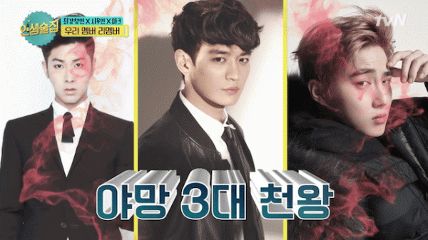 Khi nghe thấy vậy, Heechul mới bật mí “Suho chính là một phần trong bộ ba tham vọng của nhà SM Ent đấy. Đó chính là Yunho, Suho và Minho. Khi họ có dịp ngồi với nhau, nhìn nghiêm túc như ba nhà lãnh đạo đang bàn chuyện đại sự, đến cả giám đốc Lee Soo Man cũng chẳng dám đến gần cơ”.