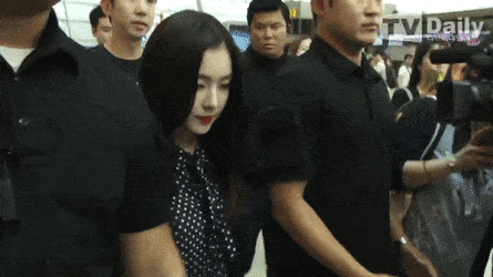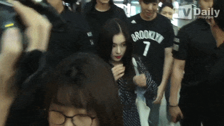 Bản thân Irene cũng chưa quen với việc có quá nhiều vệ sĩ đi cùng như thế. Trông cô nàng khá bối rối căng thẳng, liên tục lấy tay vuốt tóc. Nhưng dù đang bối rối đến mấy, Irene vẫn cố gắng vươn người chào các fan đang đứng chờ mình.
