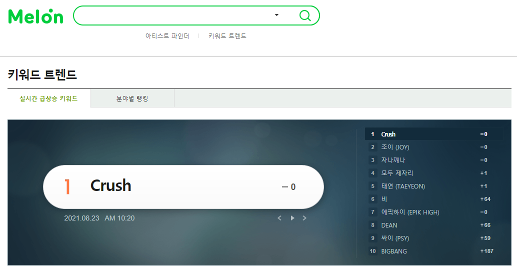 Sau khi thông tin hẹn hò “lên sóng”, Crush và Joy đã “nắm tay nhau” ngồi chễm chệ trên hai vị trí đầu tiên của khung tìm kiếm Hot Search của trang nhạc MelOn - chứng tỏ sự quan tâm đặc biệt từ phía công chúng.