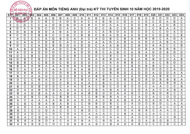Đáp án môn Tiếng Anh: