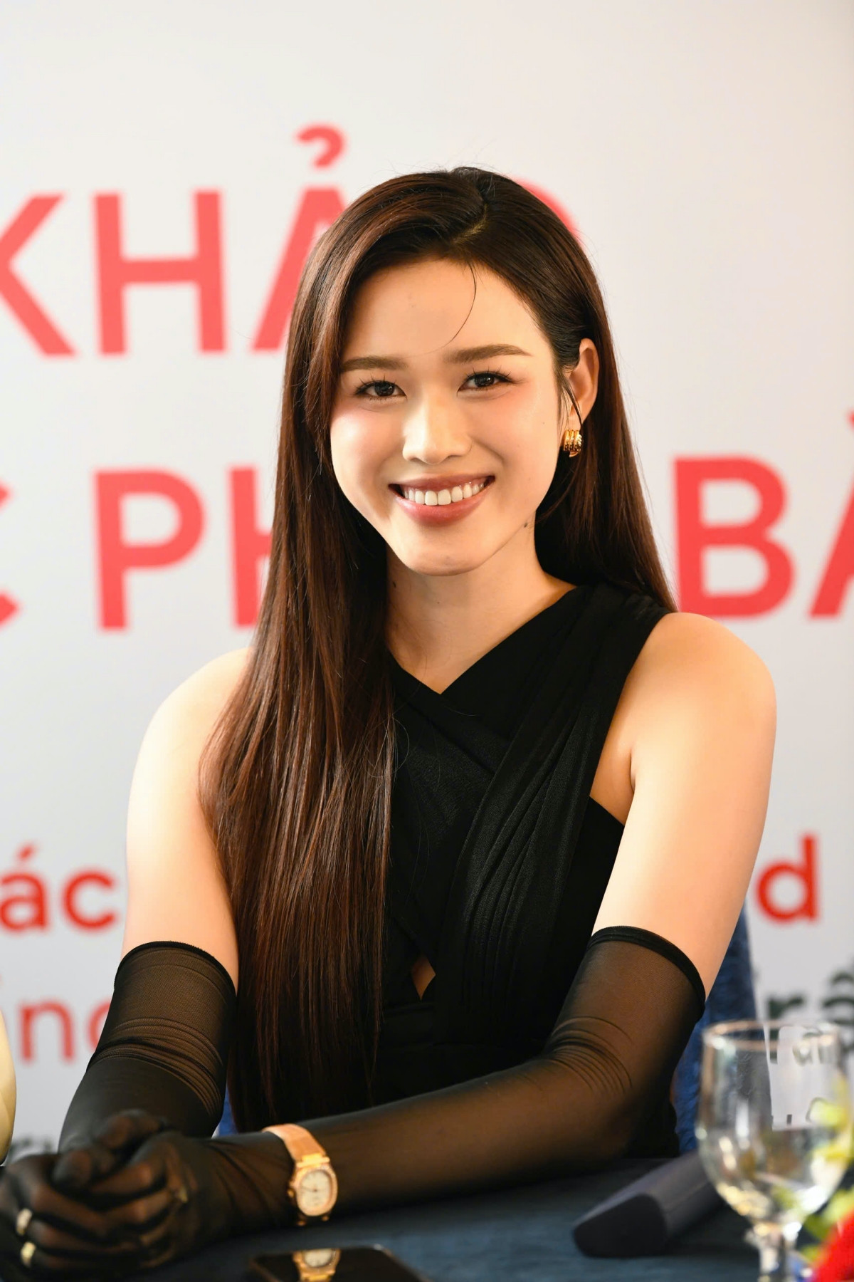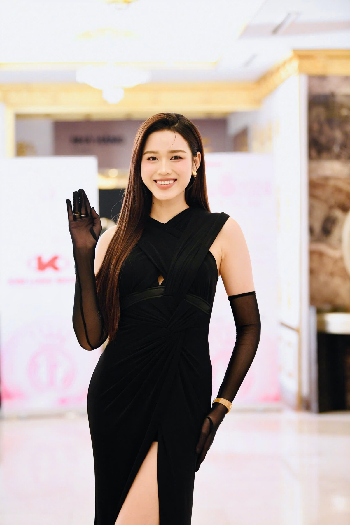 Hoa hậu Việt Nam 2020 Đỗ Thị Hà xinh đẹp nổi bật tại sự kiện. Nàng hậu diện váy đen đơn giản, đi găng tay dài và đeo đồng hồ đúng trend.