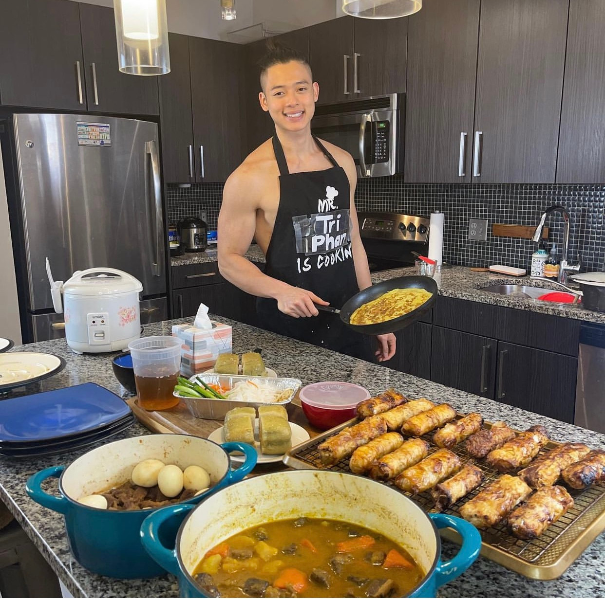 Mỗi dịp Tết đến Xuân về, mọi người cũng hay bắt gặp anh vào bếp làm mâm cơm chuẩn Việt với nhiều món ăn như bánh chưng, chả giò, bò kho,...