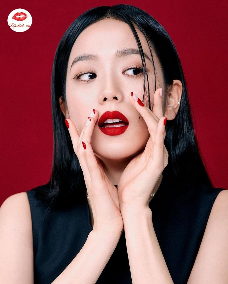 Lúc thì Jennie sẽ chống hai tay vào cằm để tập trung mọi sự chú ý vào đôi môi đỏ thắm như bông hồng.