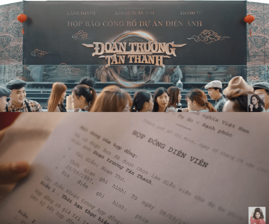Chi tiết khi Miu Lê nhận kịch bản mới trong MV mang tên Đoạn Trường Tân Thanh, đó chính là tên của bộ phim đã xuất hiện trong Duyên Mình Lỡ. Miu Lê còn bắt gặp người yêu đang diễn cảnh tình tứ với “tuesday” cũng tương tự như phân cảnh trong MV của Hương Tràm.