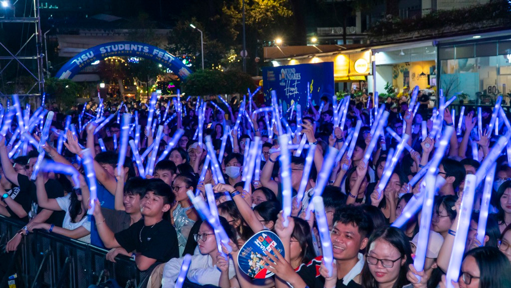 Để "xông đất" năm mới, sinh viên ĐH Hoa Sen còn được tham gia lễ hội âm nhạc diễn ra tại Nhà văn hóa Thanh niên. Đêm nhạc quy tụ hàng loạt ngôi sao đình đám như rapper Double2T, "Lady Mây" Myra Trần, ca sĩ Mỹ Mỹ, cùng các ca sĩ đang là sinh viên HSU như ca sĩ Mon Hoàng Anh, Việt Thi, rapper KenJi.