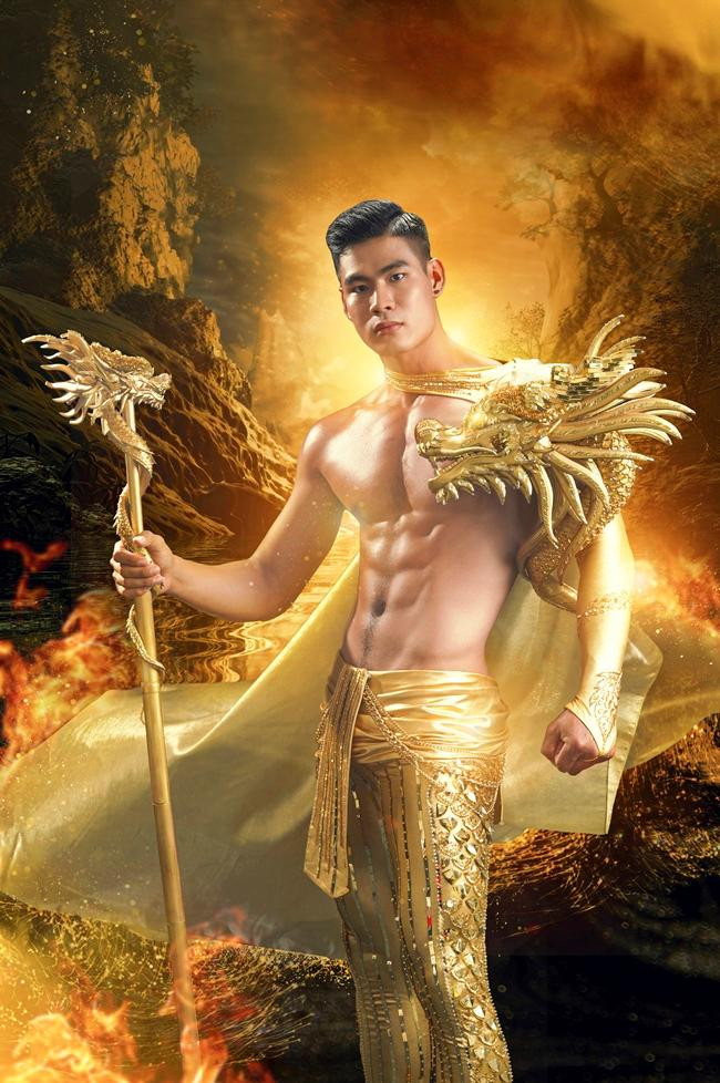 Giữa dàn thí sinh tới từ nhiều nước, đại diện Việt Nam nổi bật với dáng vóc cường tráng, mạnh mẽ cùng gương mặt nam tính. Trong phần thi dạ phục, chàng trai gốc Khmer này gây ấn tượng với khán giả bởi diện mạo lịch lãm, sang trọng.