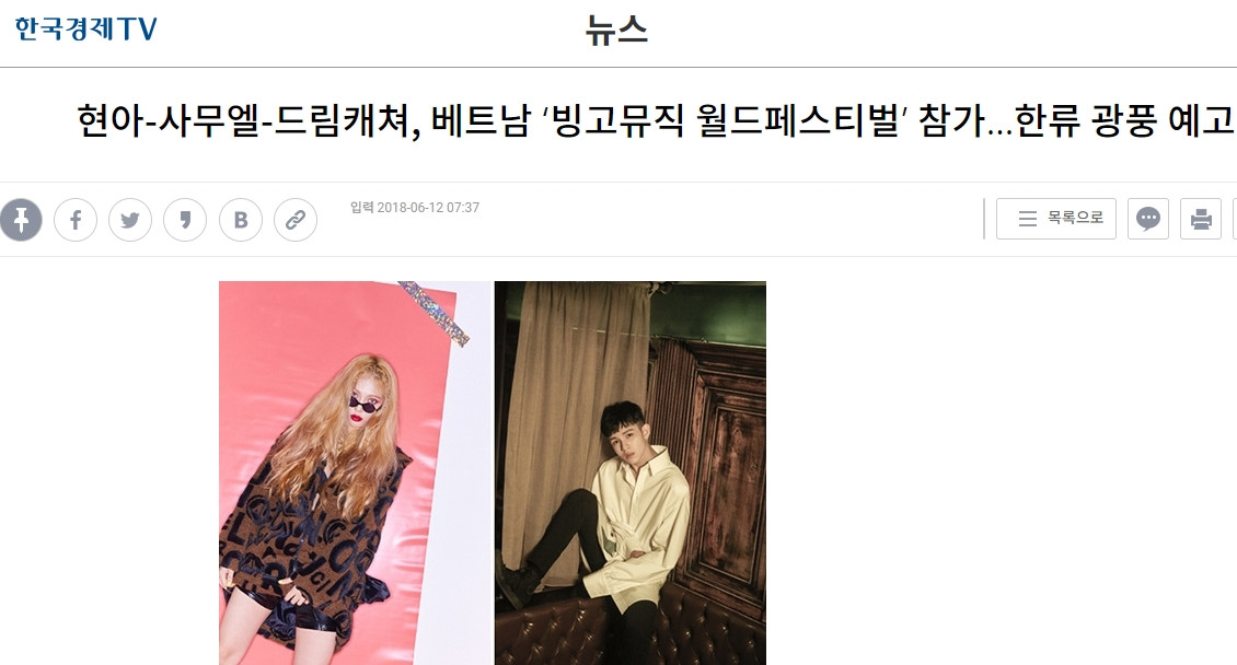 Báo Hàn đưa tin: HyunA - Samuel - Dreamcatcher tham gia Bingo Music World Festival tại Việt Nam. Dự báo làn sóng Hallyu.