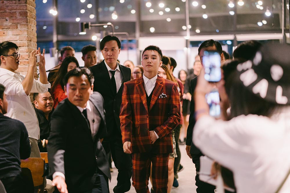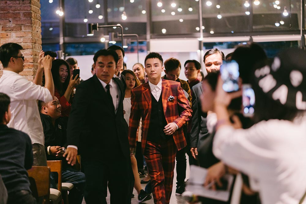 Xuất hiện trước đám đông, giọng ca Lạc trôi gây ấn tượng với bộ vest tông đỏ khá lịch lãm nhưng cũng không kém phần cá tính. Đặc biệt, như một số hình ảnh xuất hiện trên các trang mạng xã hội trước đó, mái tóc của Sơn Tùng M-TP đã được cắt tỉa gọn gàng, lịch sự với màu tóc đen thuần túy.