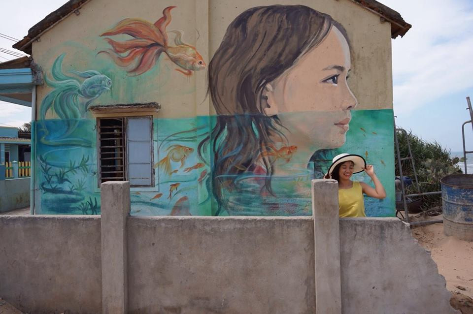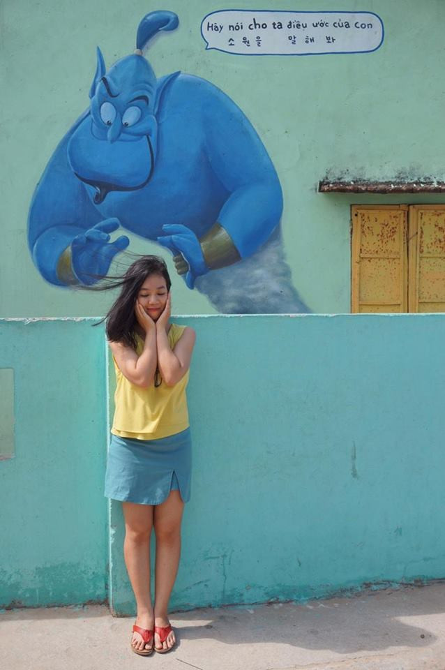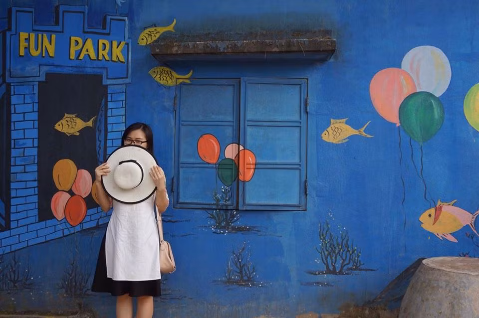 Làng bích họa Tam Thanh nhanh chóng trở thành địa điểm tham quan của nhiều bạn trẻ yêu nghệ thuật.