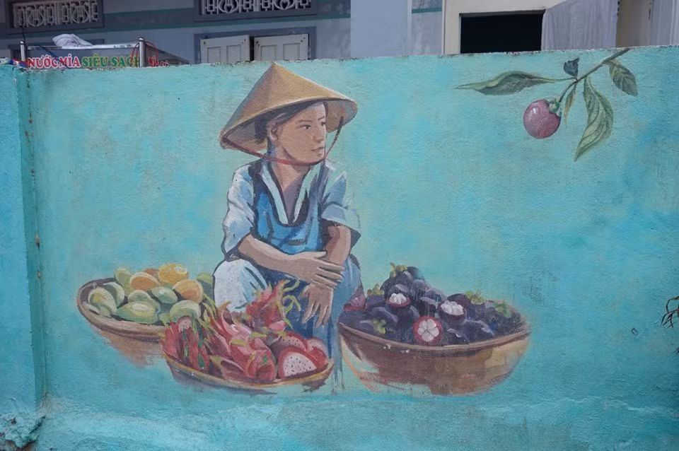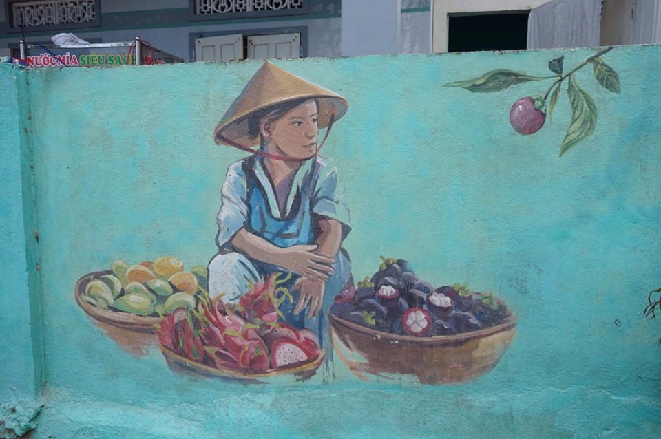 Bức tranh "full" kín cả mảng tường với nội miêu tả cuộc sống thường nhật của người dân làng chài.