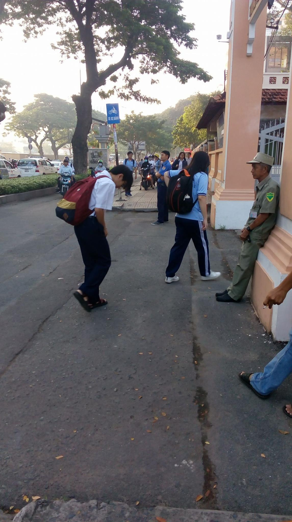 Đoạn clip được quay lại bởi phụ huynh của một bạn học sinh trường THPT chuyên Lê Hồng Phong (TP.HCM) vào buổi sáng khi chuẩn bị đến giờ vào học.