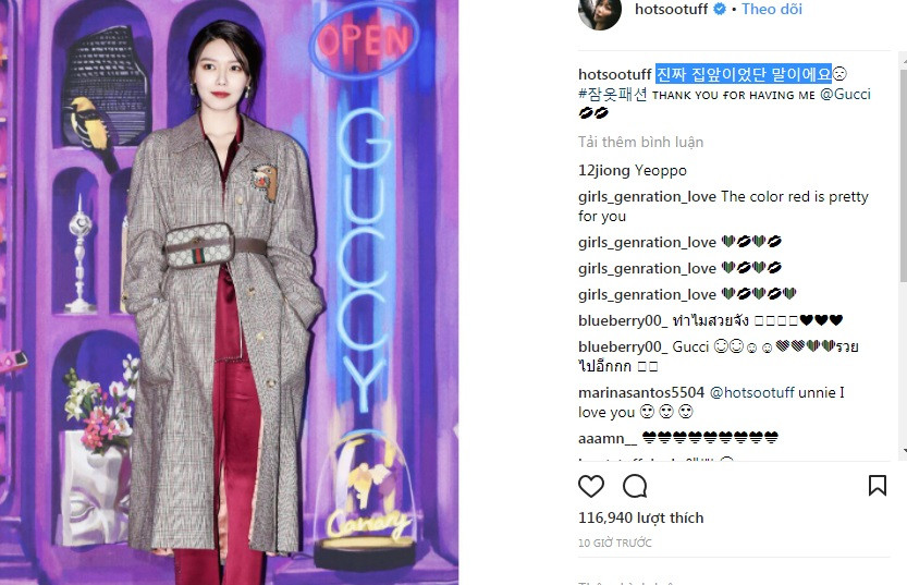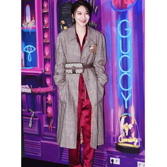 Sooyoung vừa trở thành khách mời đặc biệt trong lễ khai trương một cửa hàng của Gucci ở khu Gangnam, Seoul. Lâu nay, Sooyoung thường lên đồ rất độc đáo khi dự các sự kiện thời trang, nhưng lần này lại vô cùng khó hiểu.