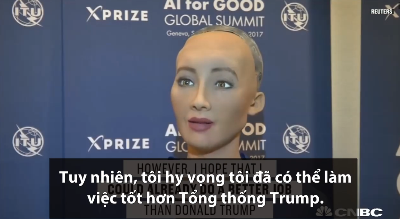 Ở Hội nghị về trí thông minh nhân tạo do Liên Hợp Quốc tổ chức ở Geneva, Thụy Sĩ, Sophia từng trở thành tâm điểm khi mạnh mẽ cho rằng mình có thể lãnh đạo nước Mỹ tốt hơn Tổng thống đương nhiệm Donald Trump. Không ít người chờ mong rằng liệu "cô nàng" này có thể "xuất xưởng" phát ngôn gây "sốc" nào khi giao lưu trong Diễn đàn 4.0 sắp tới.