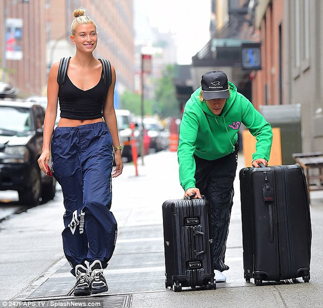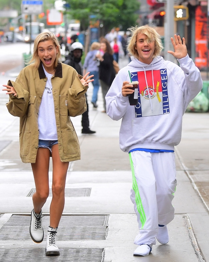 Cuối tháng 6, hình ảnh lãng mạn của Justin và Hailey được cánh săn ảnh chụp lại khi họ tay trong tay xuất hiện giữa đường phố New York. Cả hai đều lên đồ với những item đồng điệu. Justin diện nguyên cây đen: áo phông mix cùng quần short phòng tập và đội snapback đen. Trong khi đó người mẫu 21 tuổi mặc một chiếc áo da oversize màu đen với quần jeans bó sát và đi đôi giày thể thao màu trắng của Adidas.