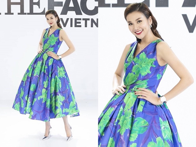 Trong ngày thứ hai của buổi sơ tuyển The Face 2018 khu vực phía Bắc, Thanh Hằng diện đầm xòe họa tiết hoa bản to của NTK Đỗ Mạnh Cường. Phụ kiện đi kèm là dây chuyền kim cương giá 200 triệu đồng và đồng hồ hơn 1,5 tỷ đồng của Chopard.