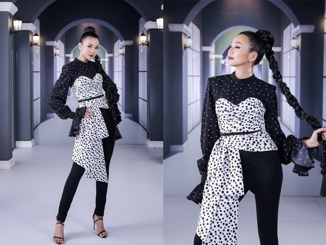 Thanh Hằng xuất hiện trong tập 3 với mái tóc không đụng hàng. Cô diện bộ đồ lạ mắt họa tiết chấm bi của NTK Tăng Thành Công.